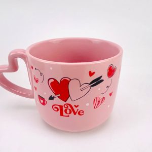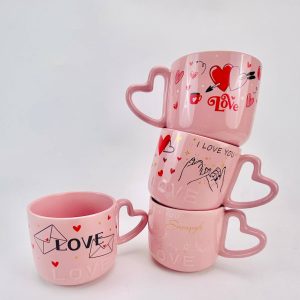 2pc Set Red Cherry Heart Shaped Handle Glass Cup 350ml