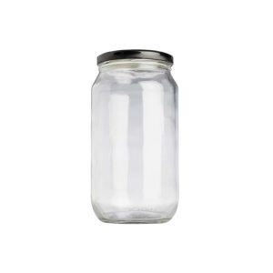 1Liter Cylindrical Glass Jar with Black Metal Lid 1000ml