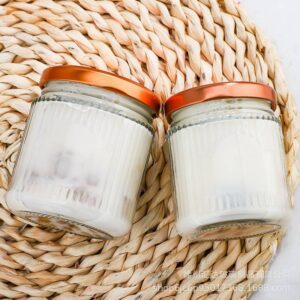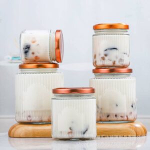 Vertical Stripes Embossed Pattern Rose Gold Metal Twist Cap Lid Glass Jar