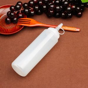 Clear Plastic Squeeze Squirt Condiment Bottle with Twist on Cap Lids and Discrete Measurements