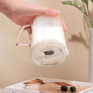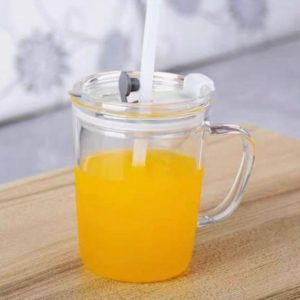 Plain Glass Mug with Spill-Proof Lid & Straw 400ml
