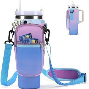Water Bottle Carrier Bag with Phone Pocket for Stanley 40/30oz Tumbler Neoprene Water Bottle Holder Pouch with Adjustable Strap for Stanley Cup