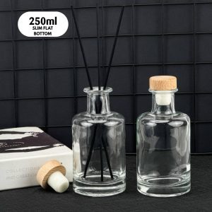 250ml Tall Slim Flat Bottom Empty Refillable Glass Diffuser Bottle with Cork Lid Aromatherapy Storage Container Jar for Fragrance Essential Oils