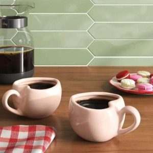 9.8oz Solid Pastel Pink Heart Shaped Stoneware Coffee Tea Mug