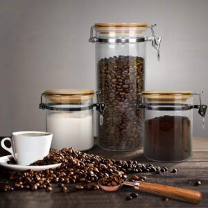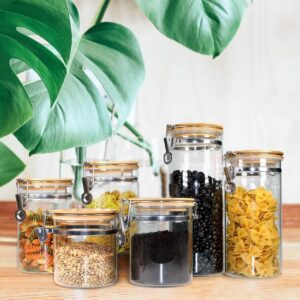 Borosilicate Glass Airtight Food Storage Canister Jar with Stainless Steel Buckle and Lock Clamp Bamboo Lid, Multipurpose Container for Storing and Preserving Food Ingredients