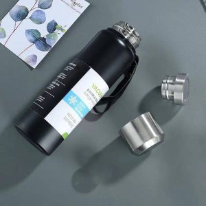 316 Stainless Steel Vacuum Insulated Bottle with Drinking Cup Lid and Strap Handle 1Litre