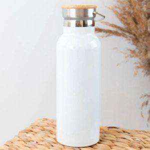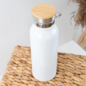 Corporate White Powder Coated Stainless Steel Double Wall Vacuum Thermos Bottle with Bamboo Lid 500ml
