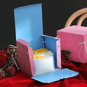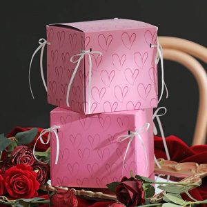 6pcs/pack Heart Print Flip Packaging Box with Ribbon Bow – L16cm x W16cm x H13cm