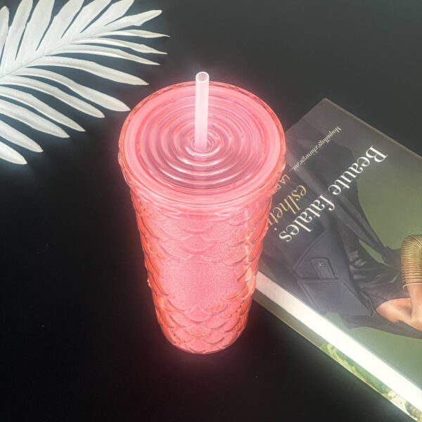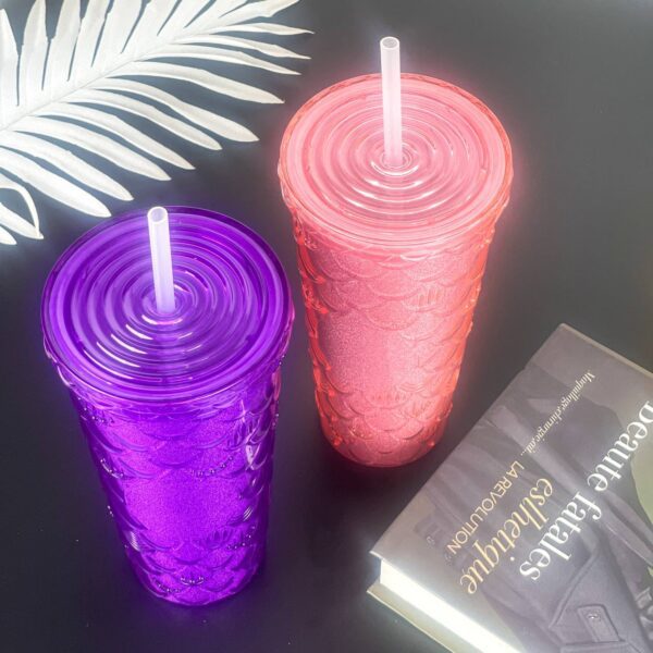 Introducing the Fish Scales Double Wall Acrylic Tumbler! This reusable drinking tumbler with a lid and straw is perfect for everyone who loves to stay hydrated! This 700ml reusable drinking tumbler has the beautifully designed scales wrapped around it to give you that beachy vibe wherever you go. It keeps your drinks insulated without any condensation on the outside, thanks to its double wall acrylic design. Don’t worry about spills – its secure seal lid will make sure that doesn’t happen! And not to mention – this cute tumbler comes with a matching straw so you can take sips in style! So, if you’re ready for a stylish and insulated drinkware essential like no other, grab your own Fish Scales Double Wall Acrylic Tumbler today!