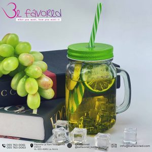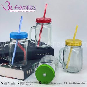 Glass Mason Jar with Colored Metal Lid & Straw 450ml -1/48