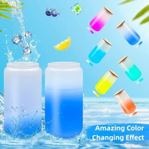 Color Changing Beer Can Frosted Glass Tumbler with Bamboo Lid and Straw 500ml