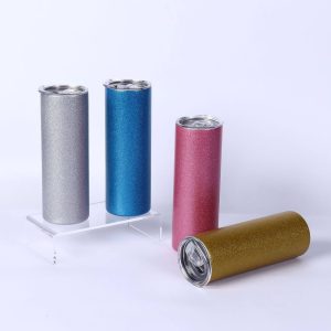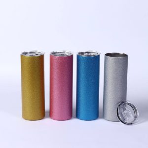 20oz Glitter Coated Skinny Stainless Steel Vacuum Insulated Thermos Tumbler