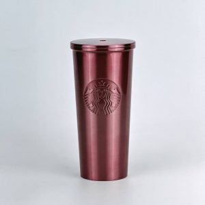 Starbucks 16oz Pink Metallic Rose Gold Metal Cold Cup Tumbler 473ml
