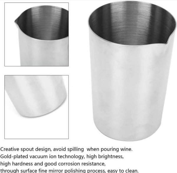 【Stylish & Fine Texture】This stainless steel wine mixing cup has been processed by the fine mirror polishing technique, which not only looks fashionable, especially under the shining lights, but also touches comfortably.